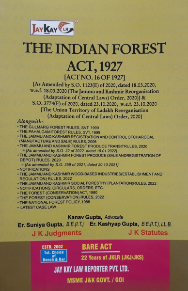 Add To CartThe Indian Forest Act, 1927 [Act No. 16 of 1927] [As Amended by S.O. 1123(E) of 2020, dated 18.03.2020, w.e.f. 18.03.2020 (The Jammu and Kashmir Reorganisation (Adaptation of Central Laws) Order, 2020)] & S.O. 3774(E) of 2020, dated 23.10.2020, w.e.f. 23.10.2020 [The Union Territory of Ladakh Reorganisation (Adaptation of Central Laws) Order, 2020]